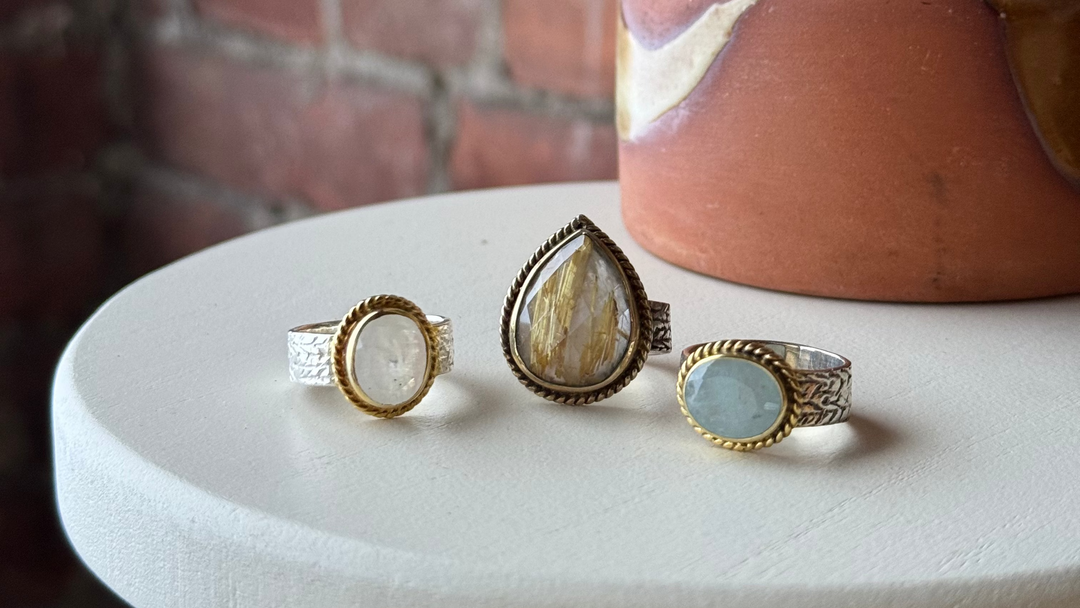 Bohemian Beauty. Modern rings with a classical feel. The natural gemstones & detail in these pieces make them remarkably special and unique.